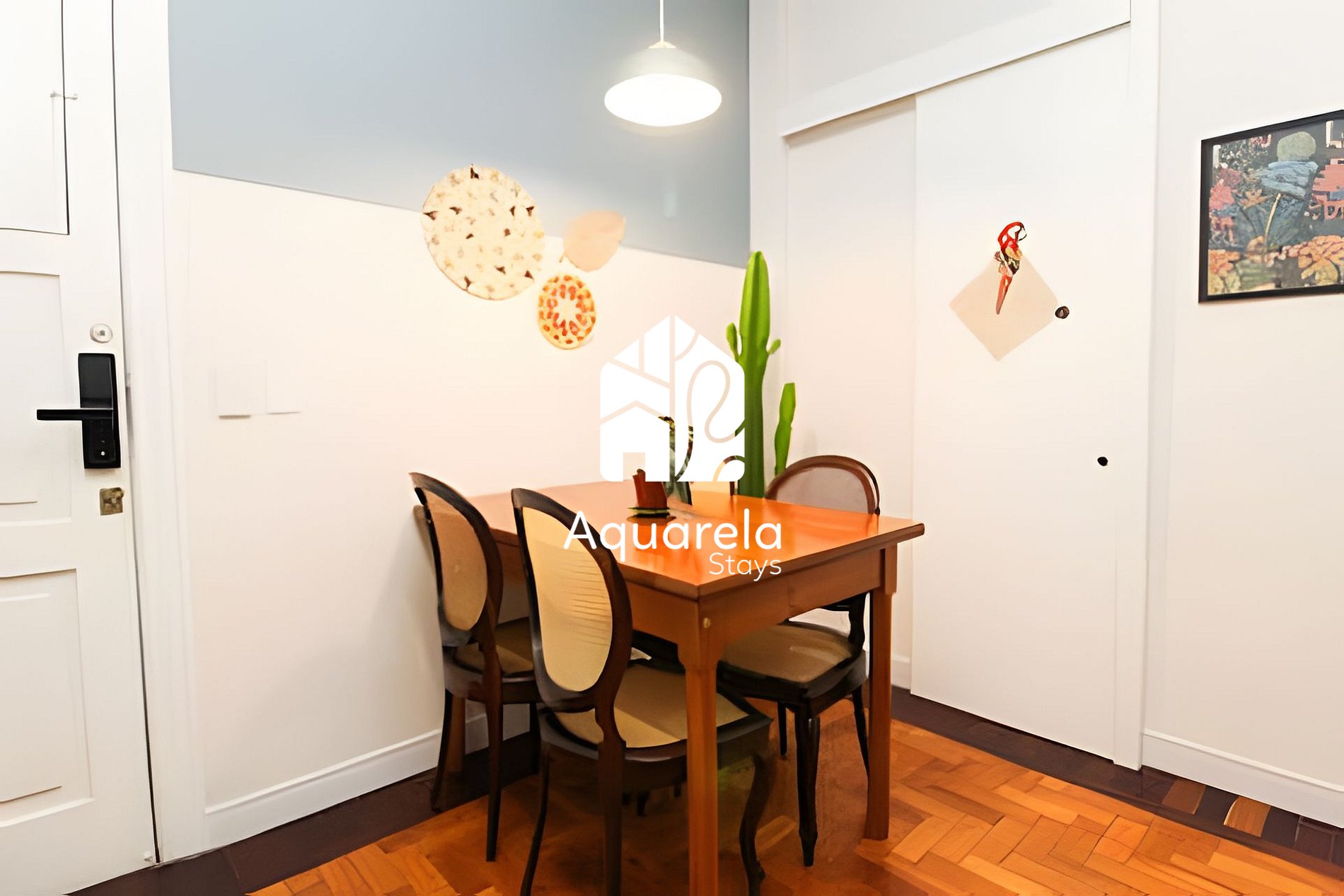 Este apartamento em Copacabana oferece uma experiência completa para quem deseja se hospedar com estilo em um dos bairros mais icônicos do Rio de Janeiro. Reformado há dois anos seguindo um projeto de arquitetura sofisticado, o imóvel combina conforto contemporâneo com o charme de um prédio histórico: o tradicional Edifício Caxias, referência na região.