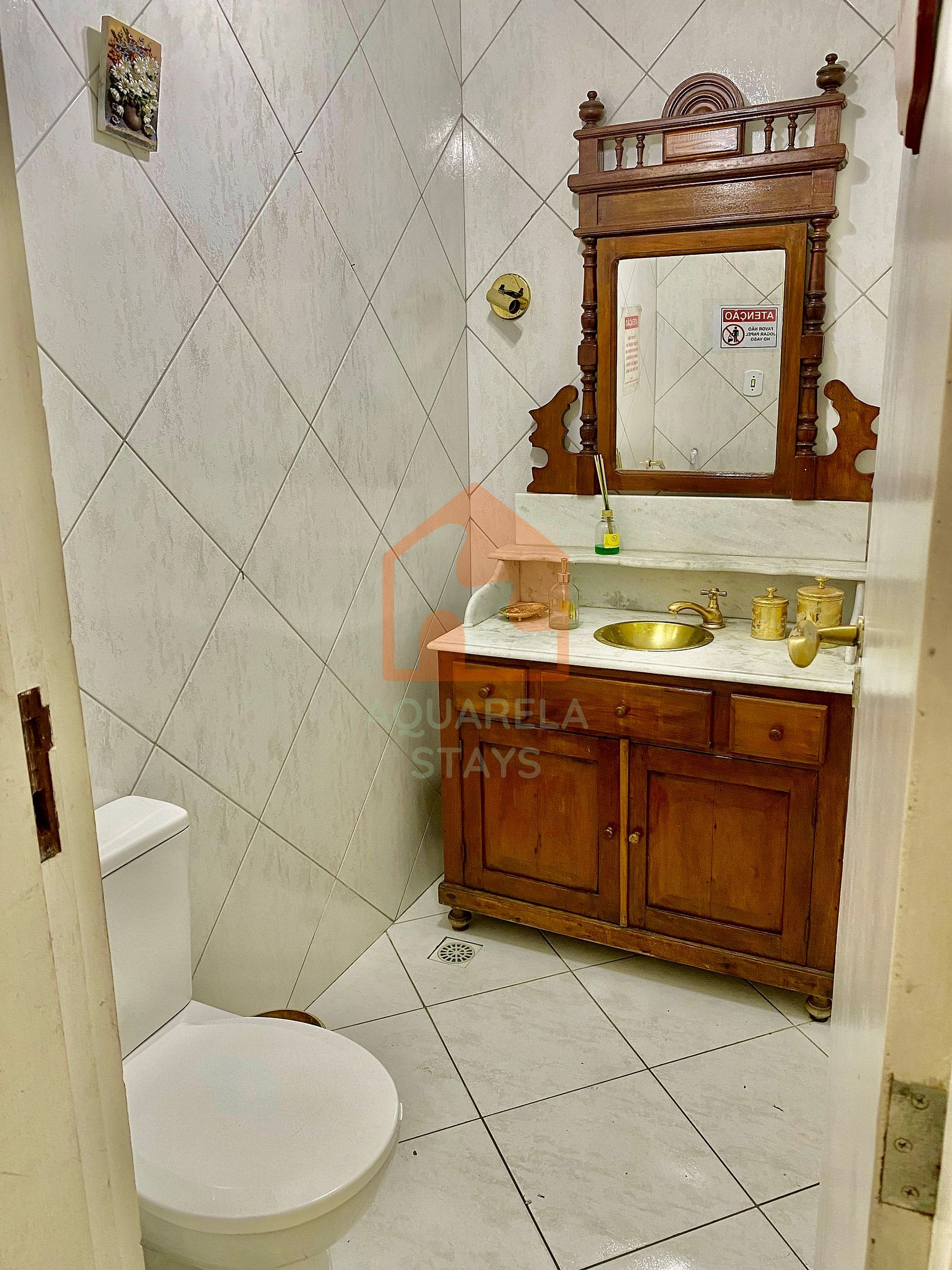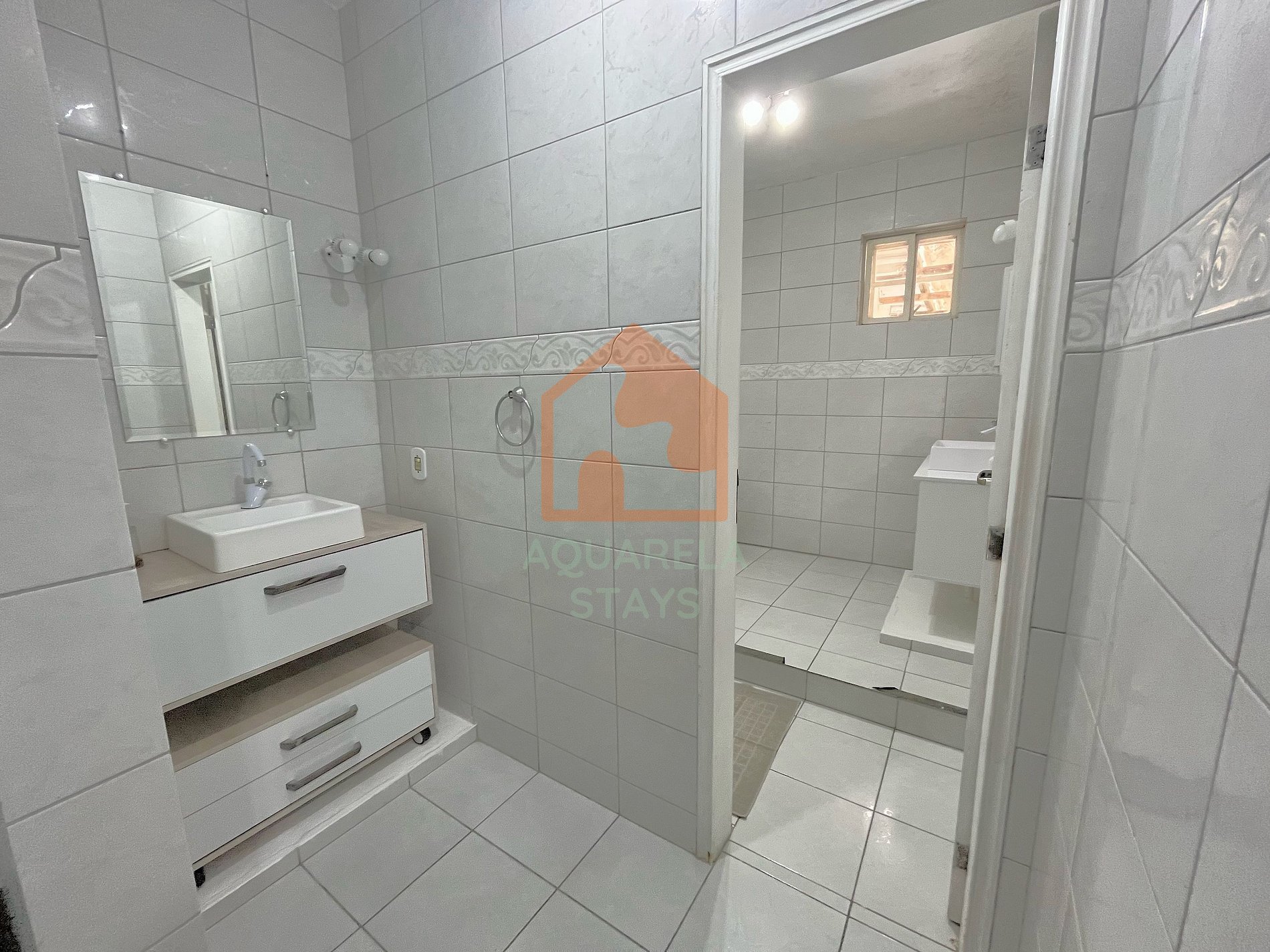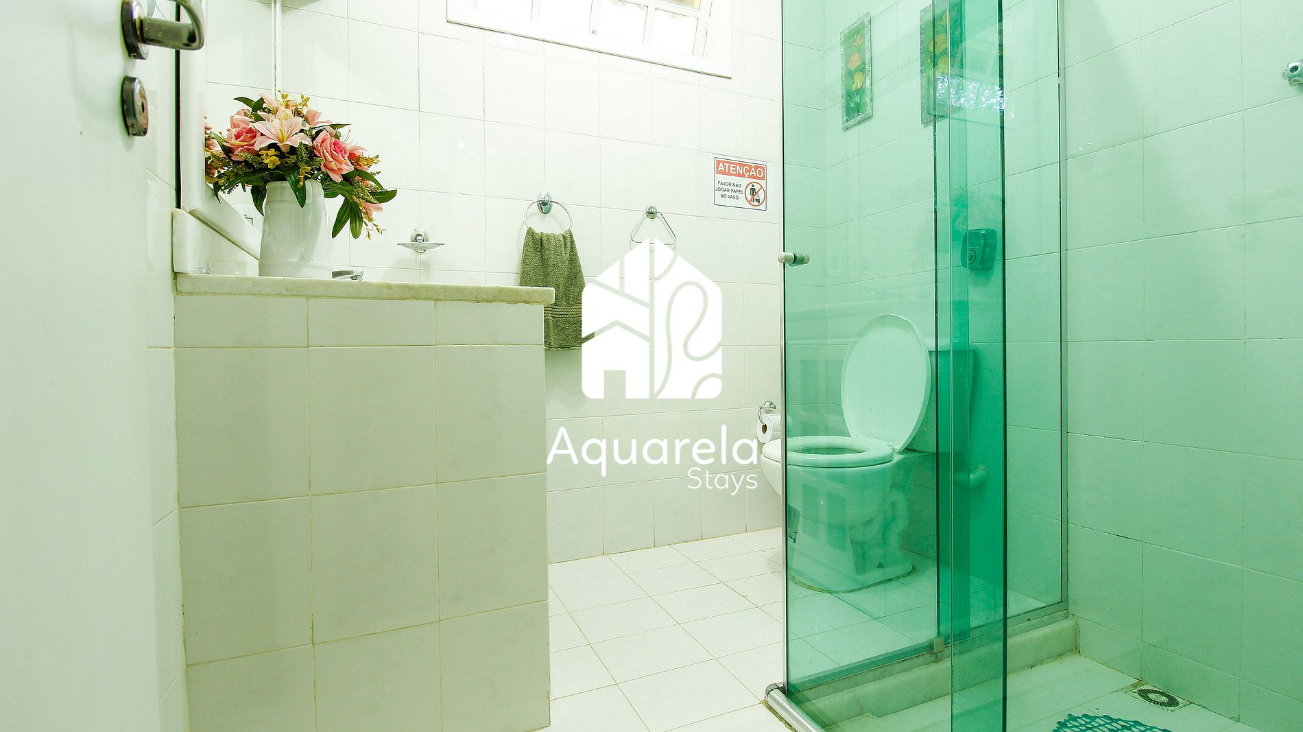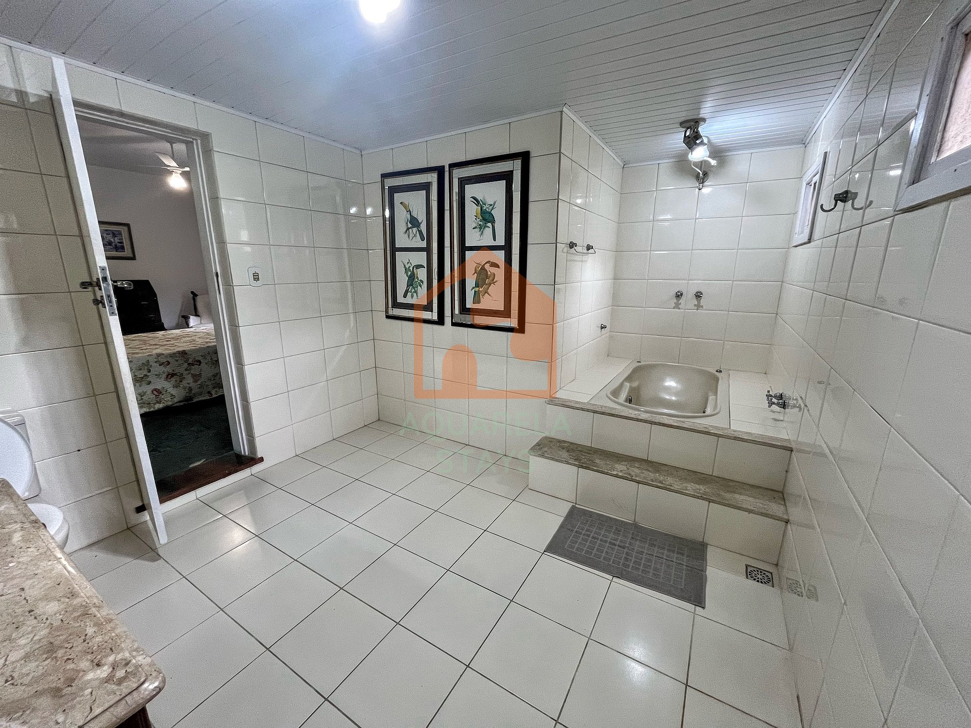 Não entrar na parte central da casa molhado de cloro da piscina, somente na cozinha e copa, temos ducha na área externa;