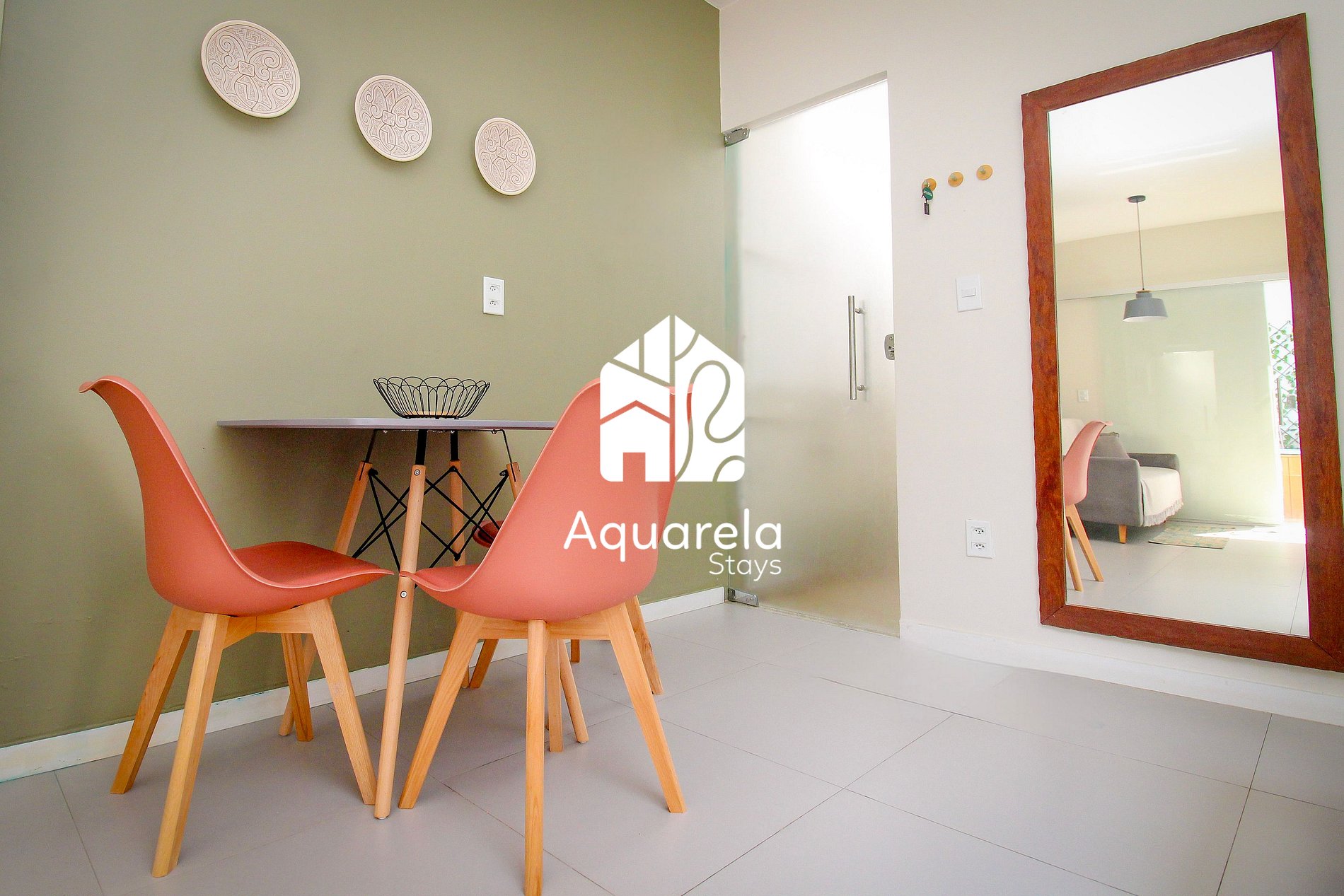 3 Sala de Estar: TV e Alexa integrada para entretenimento; Sofá retrátil de três lugares para acomodar toda a família; Mesa de jantar para quatro pessoas, perfeita para refeições em grupo.