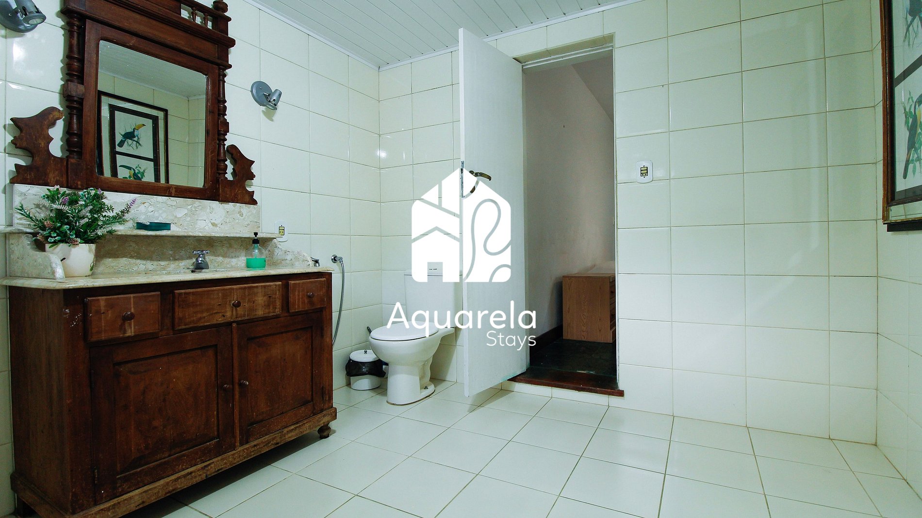 Não entrar na parte central da casa molhado de cloro da piscina, somente na cozinha e copa, temos ducha na área externa;