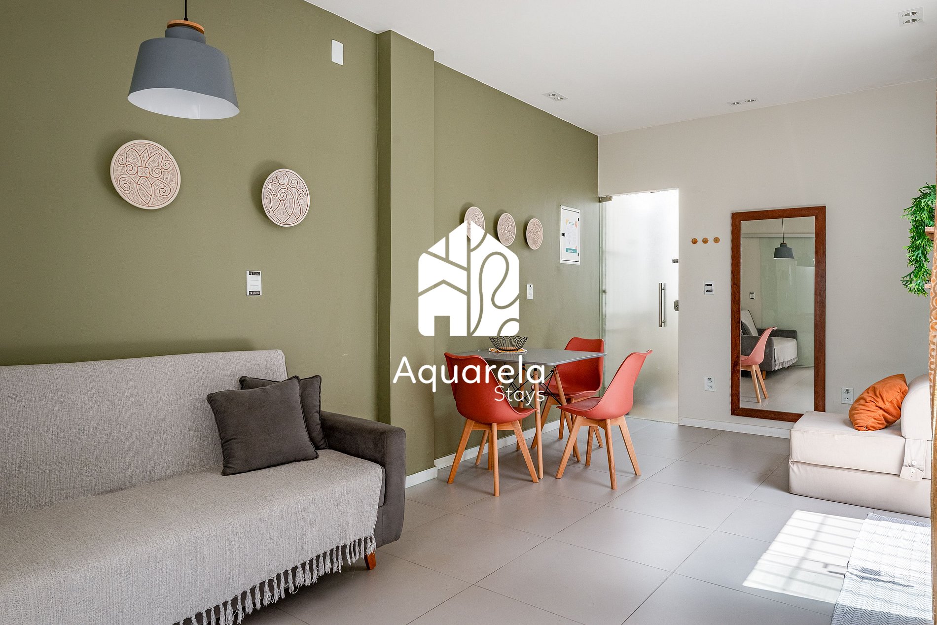 3 Sala de Estar: TV e Alexa integrada para entretenimento; Sofá retrátil de três lugares para acomodar toda a família; Mesa de jantar para quatro pessoas, perfeita para refeições em grupo.