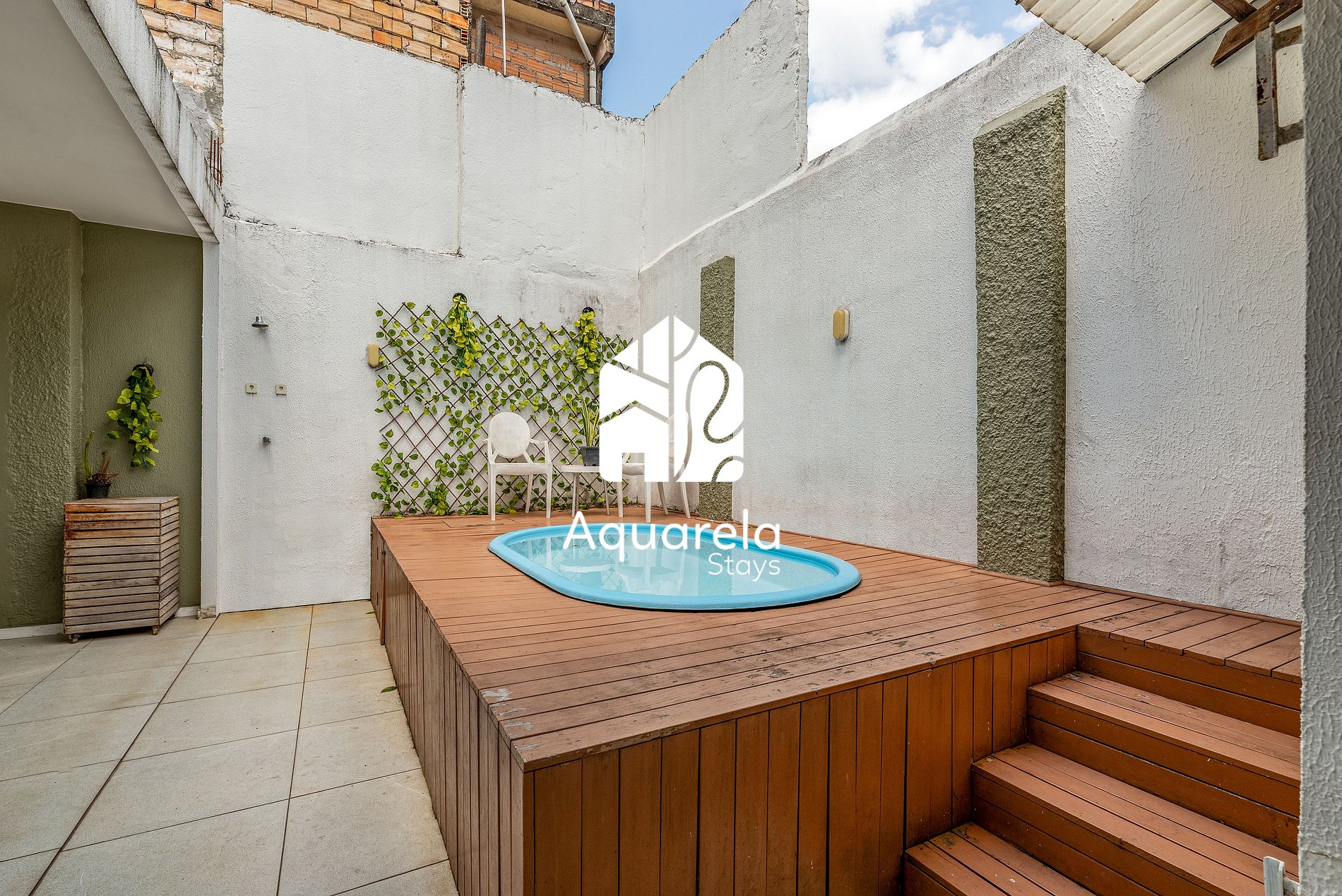 2 Área de Lazer: Piscina com deck no quintal, ideal para se refrescar nos dias quentes; Jardim de inverno, onde você pode apreciar a natureza mesmo quando está dentro de casa.