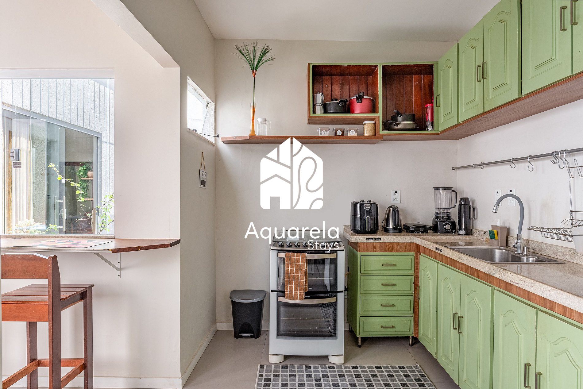 A casa é linda tem utensílios, cozinha completa, até panela de pressão, moka, etc