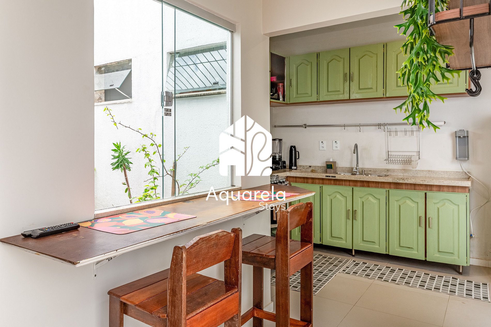 5 Cozinha Totalmente Equipada: Fogão de forno duplo para preparar suas refeições favoritas; Frigobar para manter suas bebidas geladas; Utensílios básicos, talheres e panelas para suas necessidades culinárias; Ingredientes para café, para começar o dia com energia.