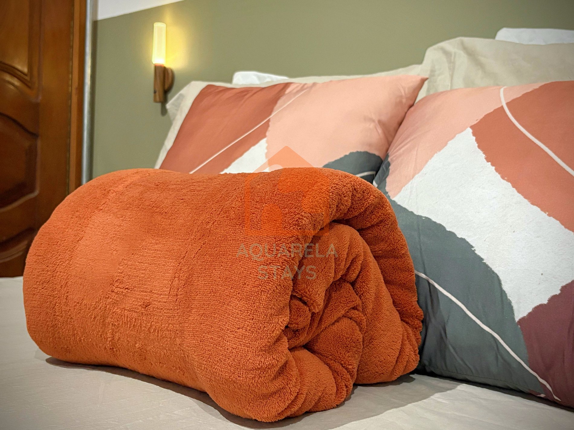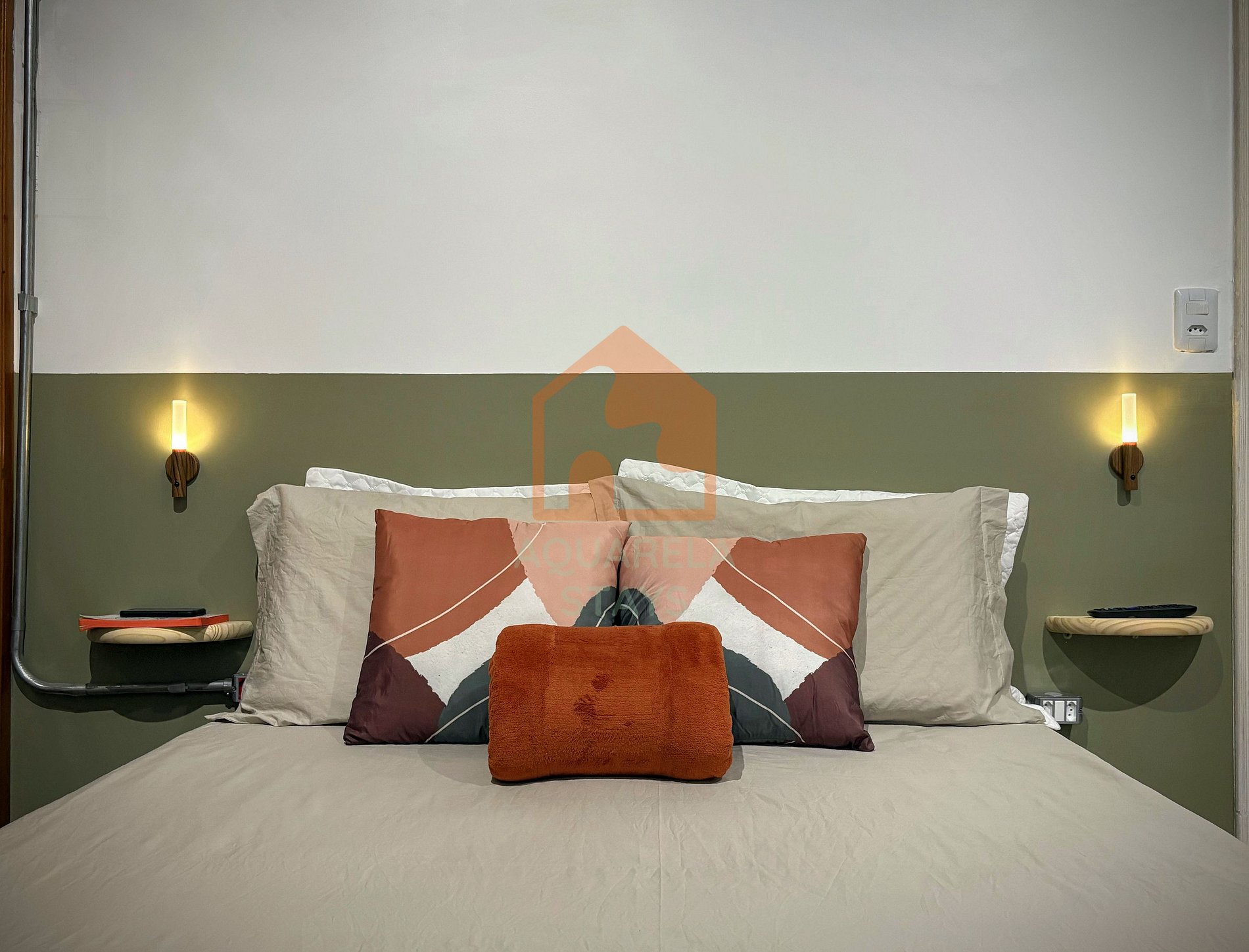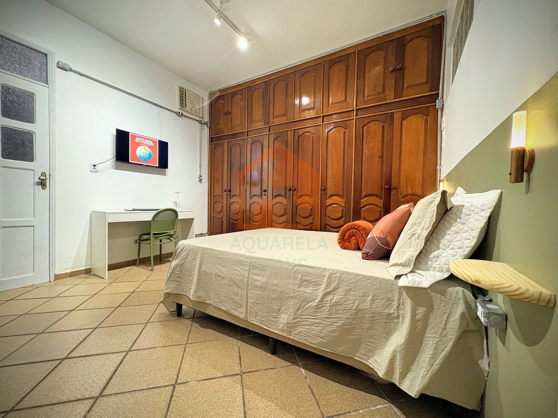 - Quarto espaçoso com cama de casal, armários, mesa e cadeira para home office e, é claro, ar-condicionado